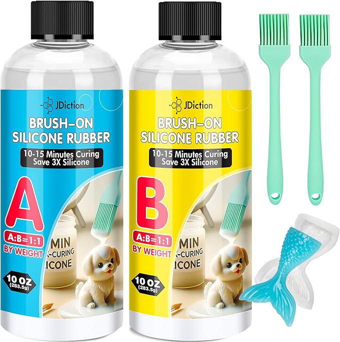 With the JDiction Brush-On silicone mold making kit from Amazon, curing is complete in just 10–15 minutes.