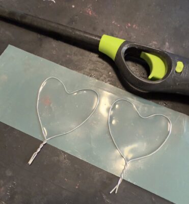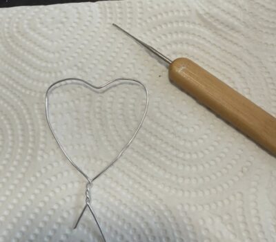 - Place a needle at the top centre of the wire balloon and push towards the base to create a heart / petal shape