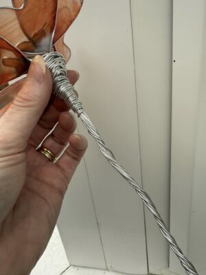 * Finally use a long length of wire to wrap around the tip of the stem and attach to the flower head base